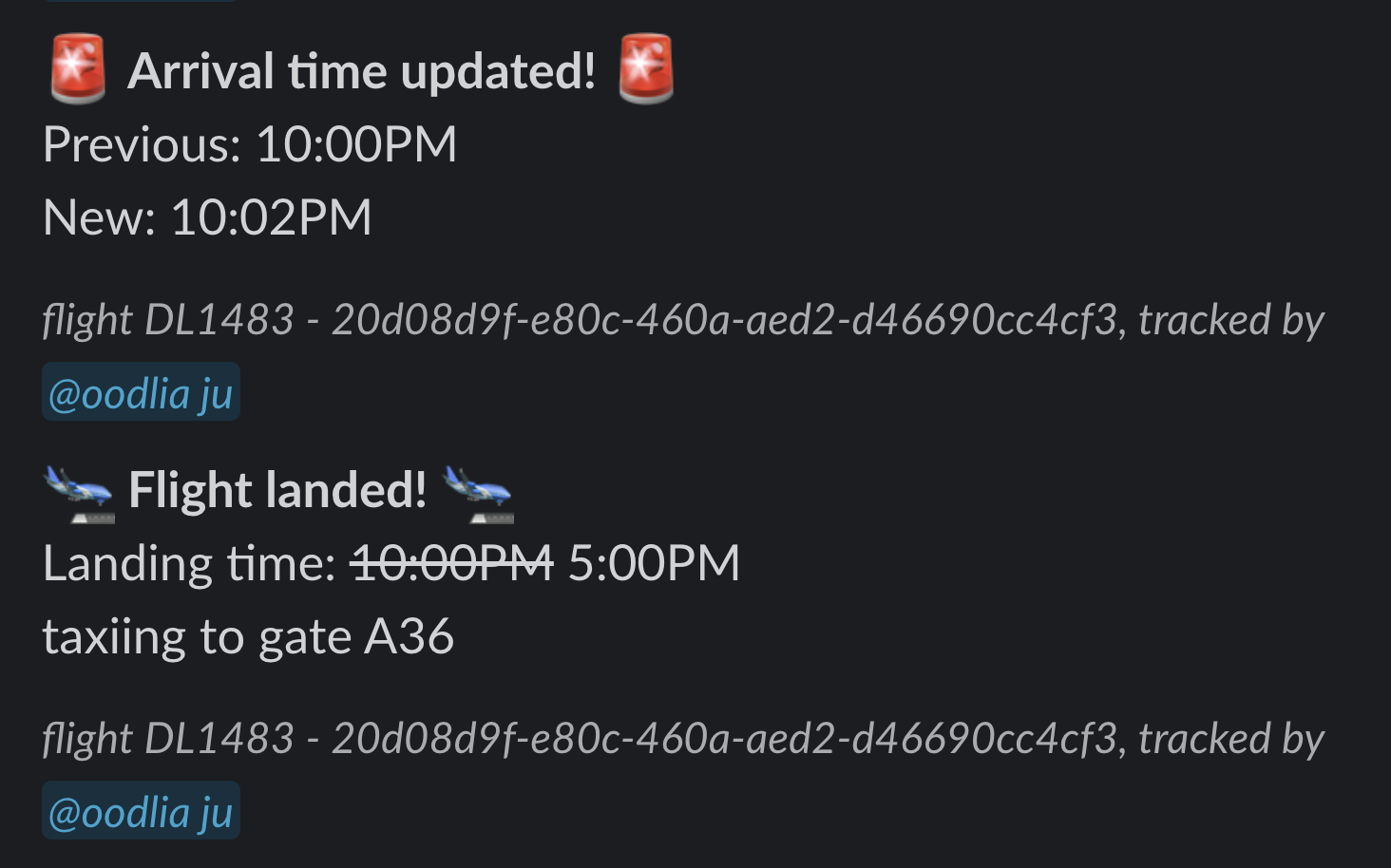 Slack flight tracking bot